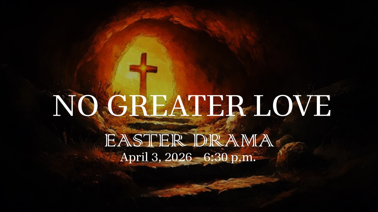 We invite you to Our Annual Easter Drama entitled, “No Greater Love” scheduled for Friday, April 3rd at 6:30 p.m. Drama rehearsals are being held each Sunday following Morning Worship.