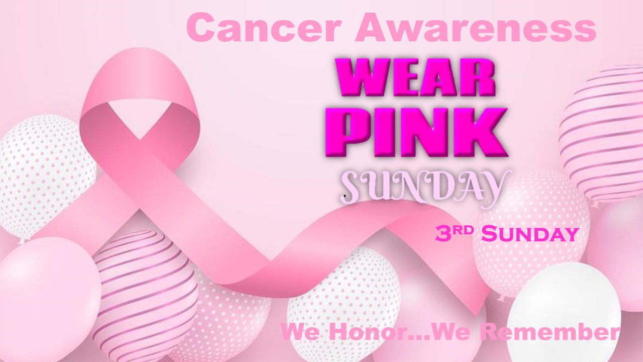 On the 3rd Sunday, members are asked to wear pink and help us paint our congregation pink in observance of Cancer awareness. Starting today, members can place a ribbon on our wall of Honor in memory, or in honor of someone touched by cancer, regardless of the type of cancer they battled.
