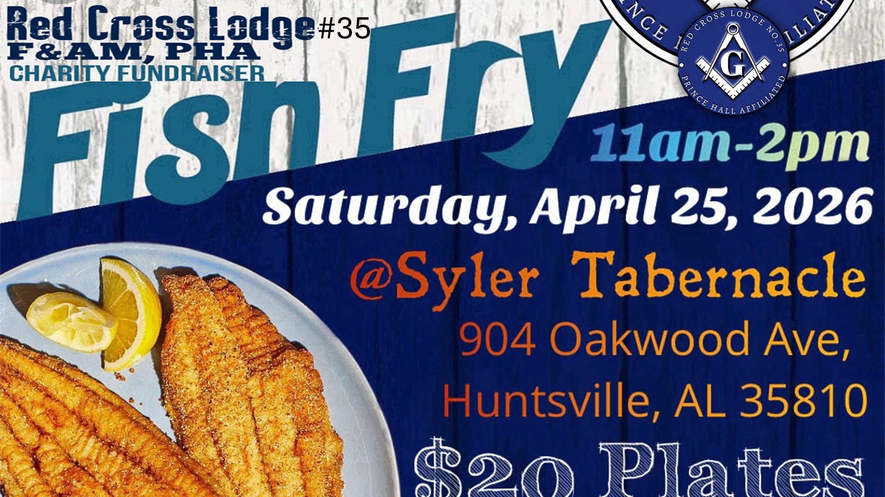 Members of Red Cross Lodge #35 will sponsor a Charity Fundraiser from 11:00 a.m. – 2:00 p.m. on Saturday, April 25, 2026 at Syler Tabernacle located at 904 Oakwood Avenue – $20/plate that includes your choice of Catrish or Tilapia, baked beans, potato salad and bread.